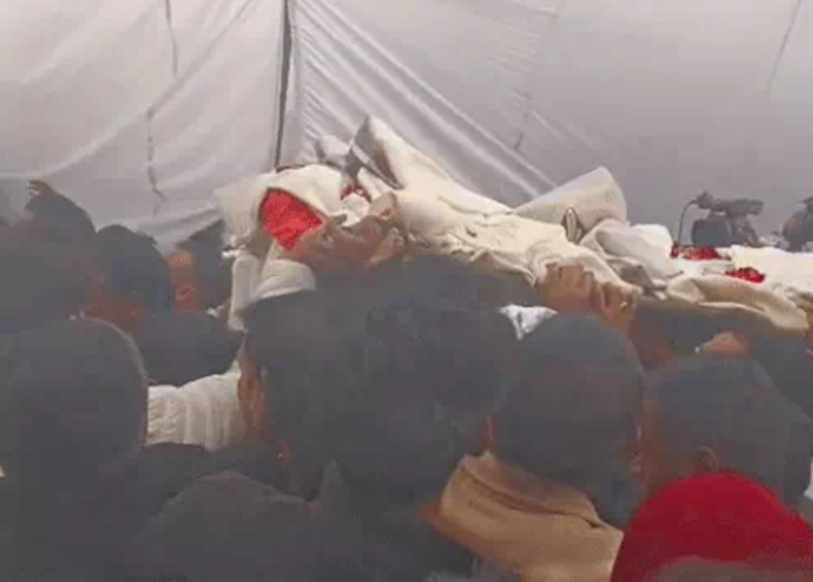 लाहौल स्पीति जिला के शिंकुला दर्रा में बर्फ के बीच मस्ती करते हुए टूरिस्ट।