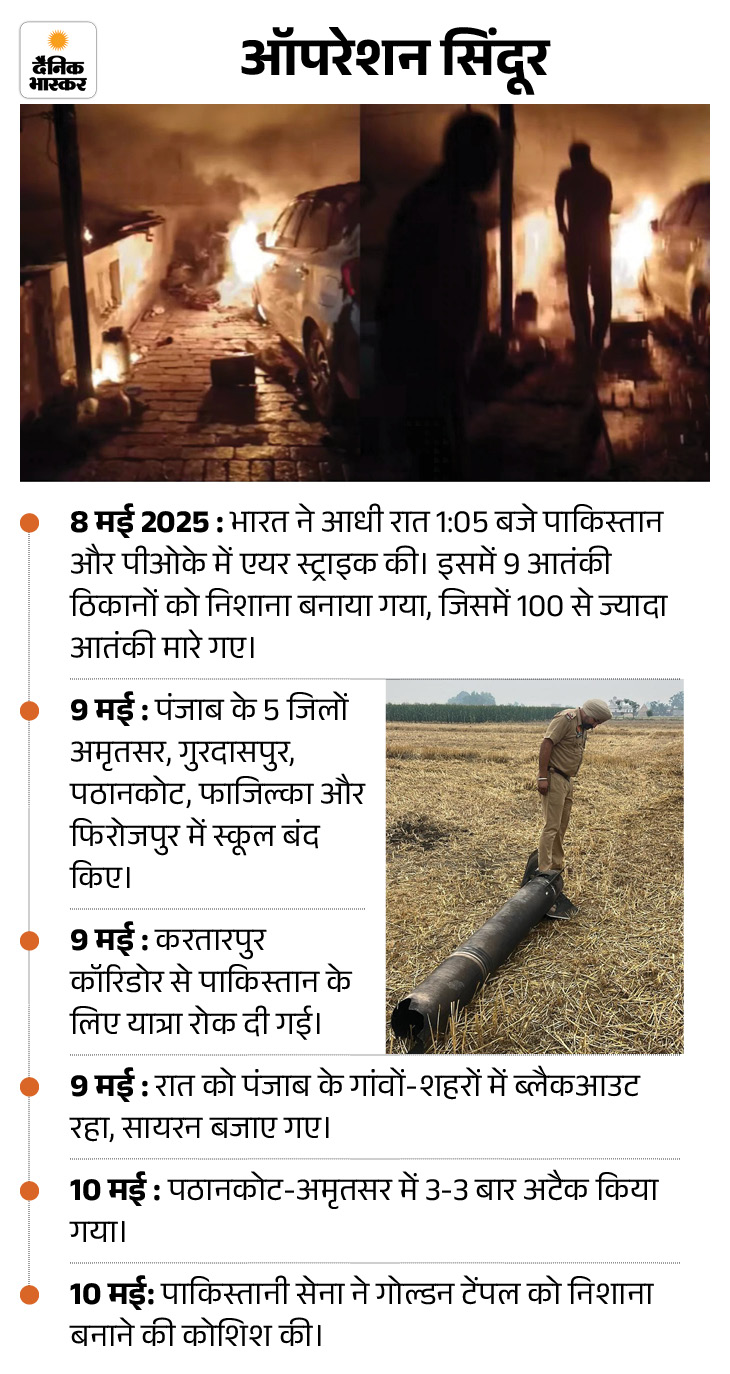 4. आपरेशन सिंदूर में पंजाब में गिरी मिसाइलें-ड्रोन पहलगाम हमले के जवाब में शुरू हुए आपरेशन सिंदूर का पंजाब में भी असर देखने को मिला। पाकिस्तान की तरफ से किए हमले में पंजाब के कई गांवों में ड्रोन और मिसाइलों के टुकड़े गिरे। लोगों ने ब्लैकआउट के दौरान अंधेरे में रातें काट सेना का हौसला बढ़ाया।
