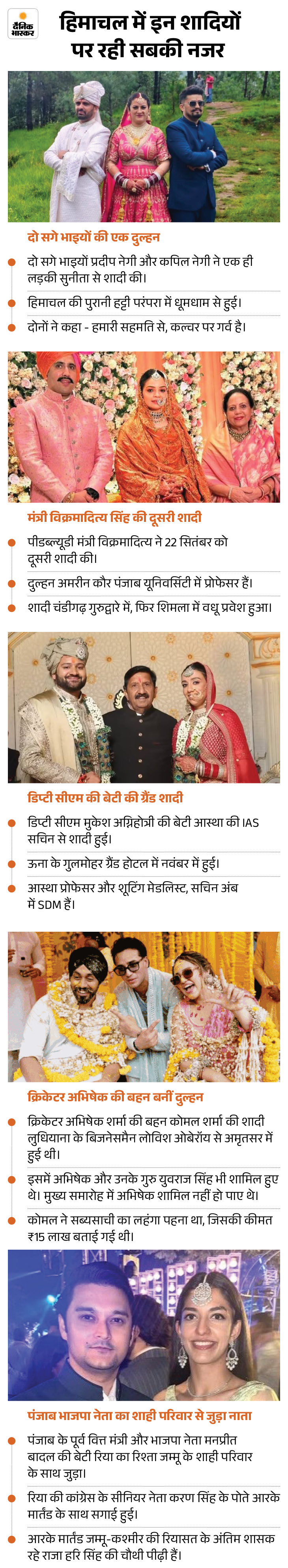 जोड़ीदार भाइयों की शादी: हिमाचल प्रदेश में साल 2025 में सिरमौर के शिलाई के 2 भाइयों ने एक लड़की से शादी की। यह शादी पूरे देश में चर्चा में रही। 12 जुलाई को शिलाई गांव के प्रदीप नेगी और कपिल नेगी की बारात साथ लगते कुन्हाट गांव की युवती सुनीता चौहान के गांव पहुंची। 13 जुलाई को शादी की सारी रस्में पूरी की गईं। शादी के बाद दोनों भाईयों ने कहा- उन्होंने बिना किसी दबाव के आपसी सहमति से शादी की है। हमें अपने कल्चर पर गर्व है।