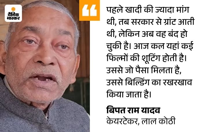 केयरटेकर बोले- फंड नहीं मिलता, शूटिंग से खर्च निकाल रहे लाल कोठी के केयर टेकर बिपत राम यादव कहते हैं कि लाल कोठी के एक कमरे से दूसरे कमरे में जाने के लिए दरवाजा खोलने की जरूरत नहीं है। बिल्डिंग काफी पुरानी हो चुकी है। इस समय इसकी हालत बहुत खस्ता हो चुकी है। लंबे समय से इसकी मरम्मत नहीं हो पाई है।