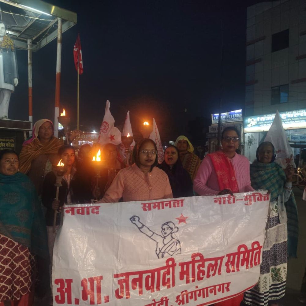 Janwadi Mahila Samiti took out a torchlight procession | जनवादी महिला समिति ने मशाल जुलूस निकाला – Sriganganagar News