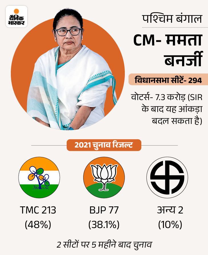 14 साल से CM ममता के सामने BJP मुख्य चुनौती है। 2026 के चुनाव में टीएमसी जीती तो ममता बनर्जी लगातार रिकॉर्ड चौथी बार मुख्यमंत्री बनेंगी। वे ऐसा करने वाली देश पहली महिला होंगी। इससे पहले जयललिता के नाम 5 बार तमिलनाडु की मुख्यमंत्री बनने का रिकॉर्ड है। लेकिन वे 1991 से 2016 तक अलग-अलग कार्यकाल (लगातार नहीं) में मुख्यमंत्री पद पर रहीं।