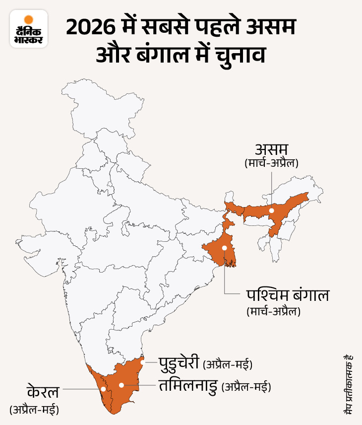 Assam Kerala Election 2026 Schedule; BJP Congress – West Bengal | Bangladesh Nepal Israel | 5 राज्यों में चुनाव, 3 में BJP कभी नहीं जीती: इस साल देश की 17% आबादी चुनेगी नई सरकारें; दुनिया के 36 देशों में भी इलेक्शन