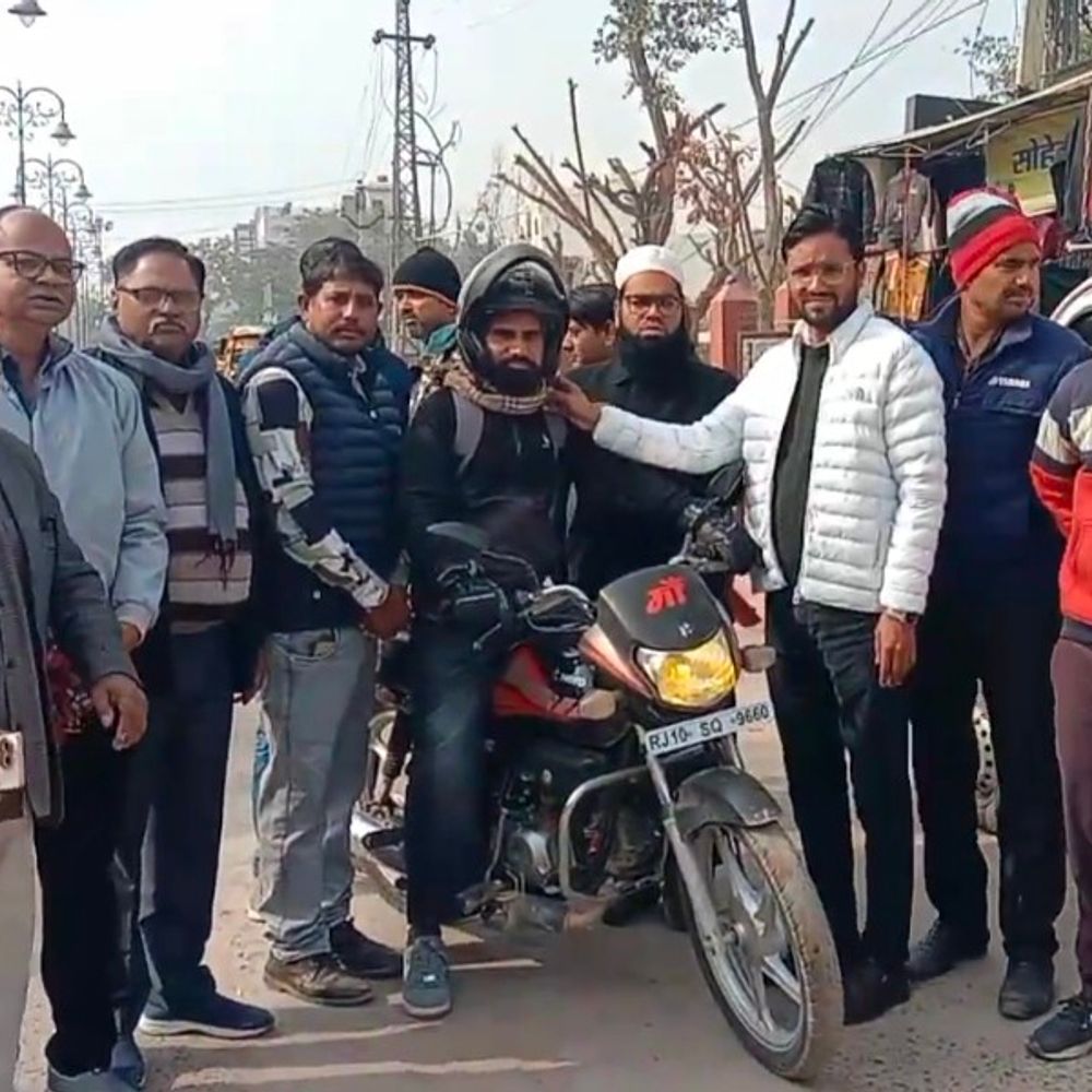 चूरू में इंसानियत एकता सेवा समिति ने चाइनीज मांझे से बाइक सवारों को बचाने के लिए मफलर वितरित किए।