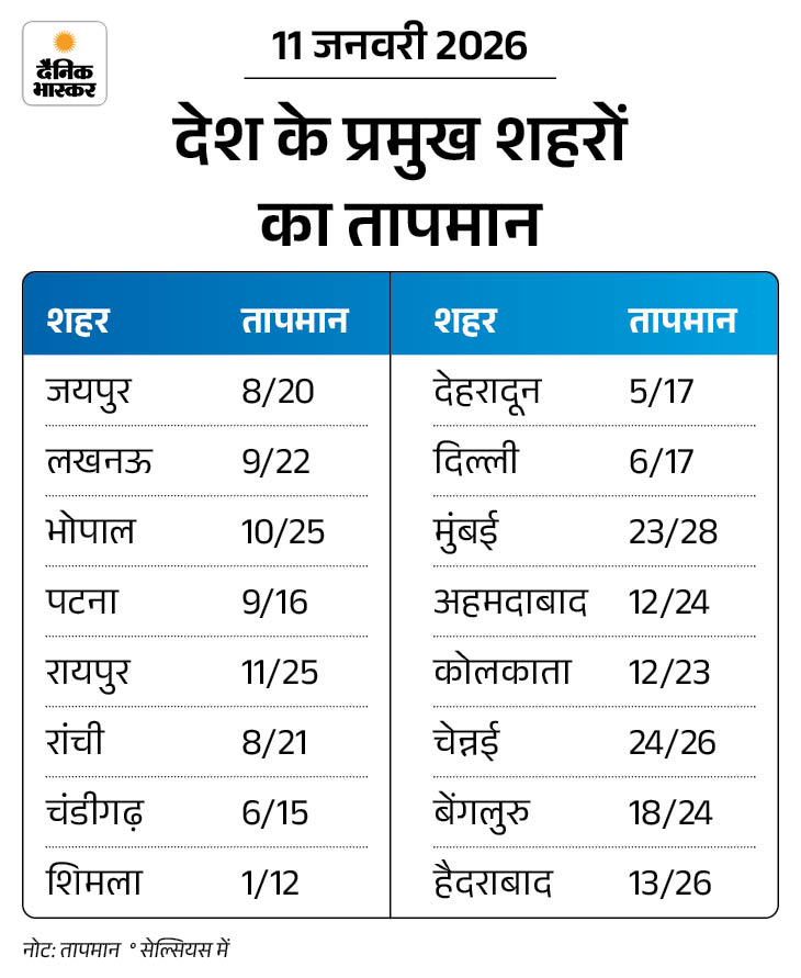 Temperature India Weather, Imd Weather, Cpld Wave Updates, Weather India, IMD Alert, IMD Weather forecast, Weather News | MP के 25 शहरों का तापमान 10 डिग्री से नीचे: राजस्थान में कोहरे के कारण 2 एक्सीडेंट, 24 घायल; UP के आजमगढ़ में पारा 3.7°
