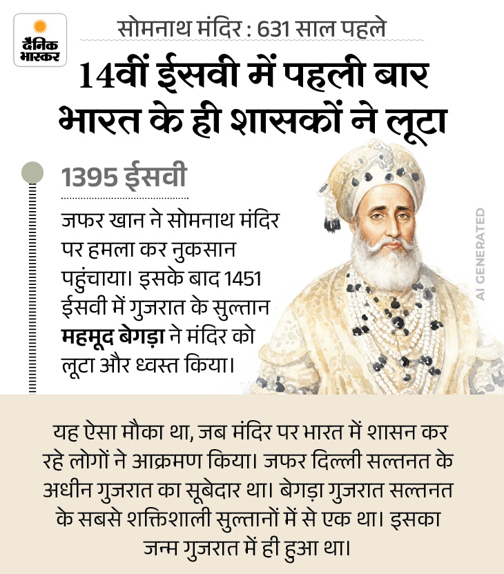 Somnath Temple Attack History Facts; Mahmud Ghazni Khalji Aurangzeb | PM Narendra Modi | सोमनाथ मंदिर पर गजनवी के हमले के 1000 साल: मुस्लिम शासकों ने कई बार तोड़ा, आजादी के बाद सरदार पटेल ने बनवाया; ध्वस्त होने से बनने तक की कहानियां