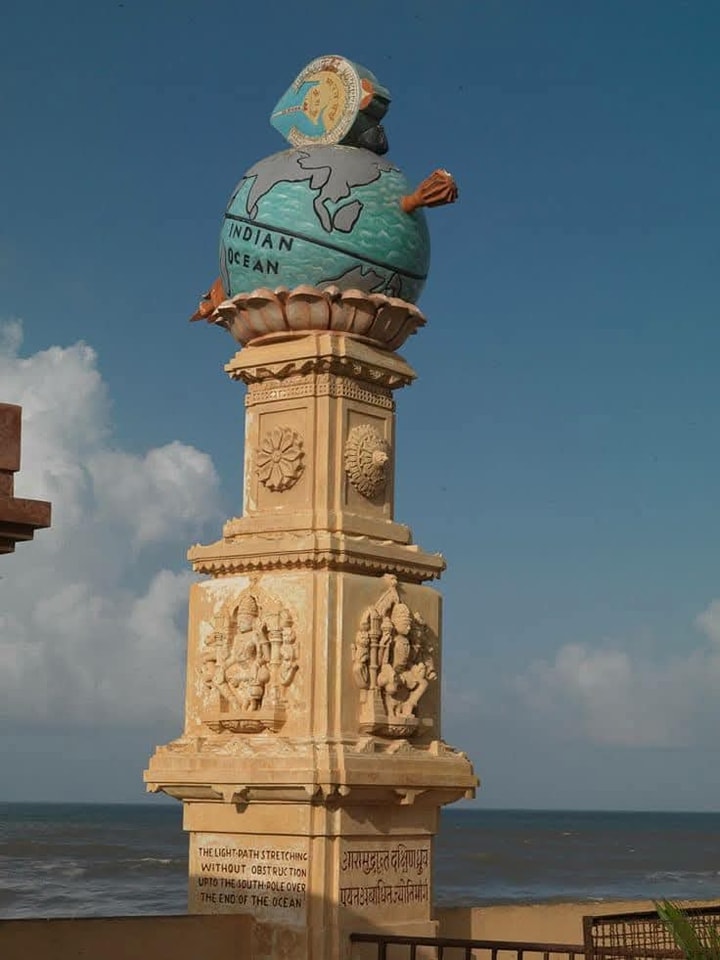 मंदिर परिसर के बाणस्तंभ पर संस्कृत (आसमुद्रांत दक्षिण ध्रुव पर्यंत अबाधित ज्योतिरमार्ग) और दूसरी तरफ इंग्लिश में एक अभिलेख है। इसमें लिखा है- इस बिंदु से साउथ पोल तक सीधी रेखा में कोई अवरोध नहीं है।