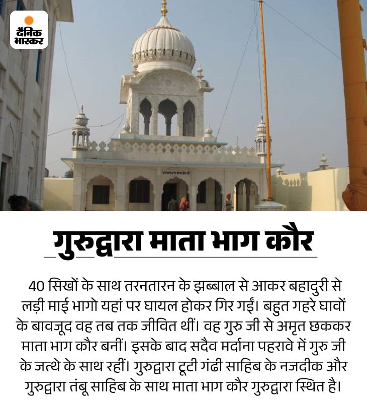 3. परिजनों ने 40 सिखों के घर लौटने पर खूब कोसा चमकौर की गढ़ी से गुरू गोबिंद सिंह जी ने खिदराने की ढाब (मुक्तसर) के ऊंचे रेतीले टिब्बों में अपना डेरा लगा लिया। इधर, 40 सिखों ने घर में लड़ाई छोड़कर आने की बात बताई ताे परिवार के लोगों ने उन्हें खूब कोसा। उन्होंने कहा कि मुसीबत के वक्त गुरू गोबिंद सिंह जी का साथ छोड़ना चाहिए था। परिवार की महिलाओं ने कहा कि आप सब घर बैठो, हम गुरू जी के साथ सेना बनकर लडेंगी। तब माई भागो ने भी 40 सिखों को लड़ने के लिए प्रेरित किया।