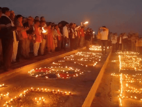 सवाई माधोपुर के रामेश्वर घाट तीर्थस्थल पर हुआ दीपदान:6 हजार दीपकों के साथ मां त्रिवेणी की महाआरती