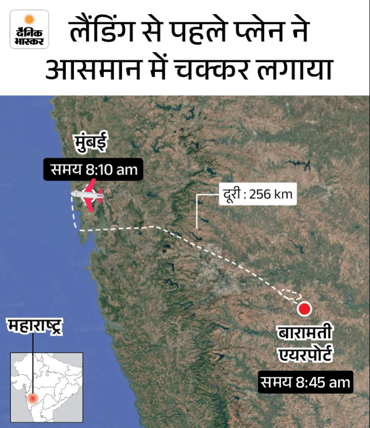 CCTV में प्लेन क्रैश बारामती एयरपोर्ट पर लैंडिंग की कोशिश में रनवे से पहले गिरता है। इसके बाद प्लेन में ब्लास्ट के साथ आग लग जाती है।