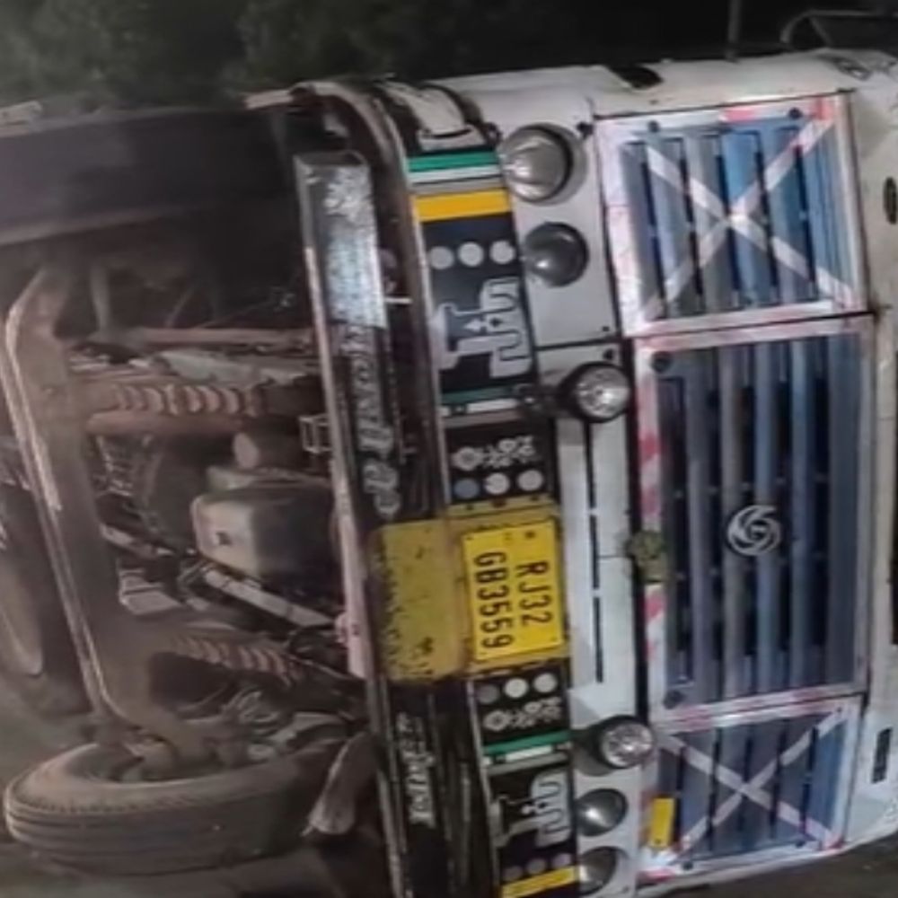 जयपुर के हाइवे पर केबिल से भरा ट्रेलर पलटा:कार को बचाने के लिए लगाए थे ब्रेक, केबिन में फंसे ड्राइवर को बाहर निकाला