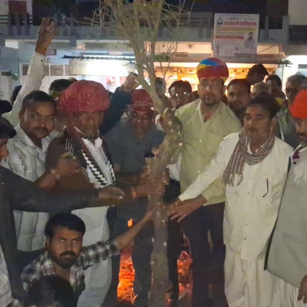 जालोर में होली का डांडा रोपा, फागोत्सव की शुरुआत:ढोल-नगाड़ों के साथ निकला जुलूस, एक माह बाद होगा होली दहन