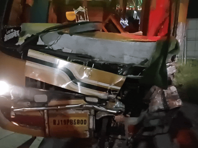 जोधपुर से जयपुर आती स्लीपर बस की ट्रेलर से टक्कर:इमरजेंसी एग्जिट गेट से सवारियों को निकाला बाहर; लग सकती थी आग