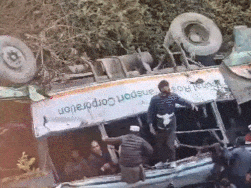 देहरादून में खाई में गिरी बस, 4 की मौत:5 की हालत गंभीर, 35 से ज्यादा घायल; पांवटा साहिब जा रही थी