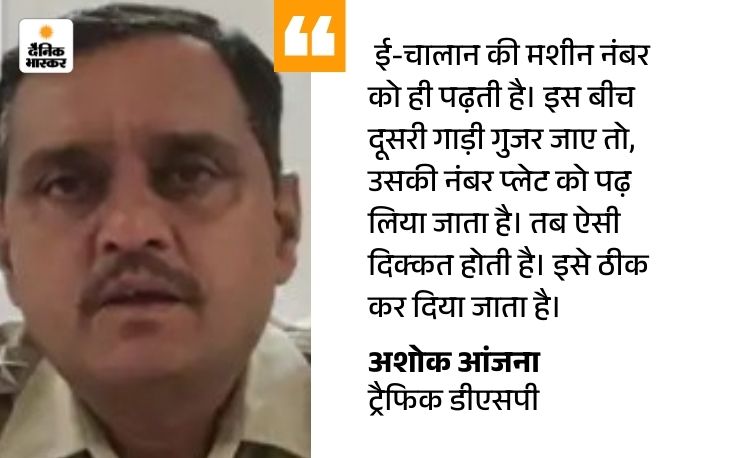 ट्रैफिक डीएसपी कहते हैं- इस केस में ऐसा हुआ है कि बाइक सवार बिना हेलमेट था और पीछे कार का नंबर साफ दिख रहा था। मशीन ने उसे रीड कर दिया।