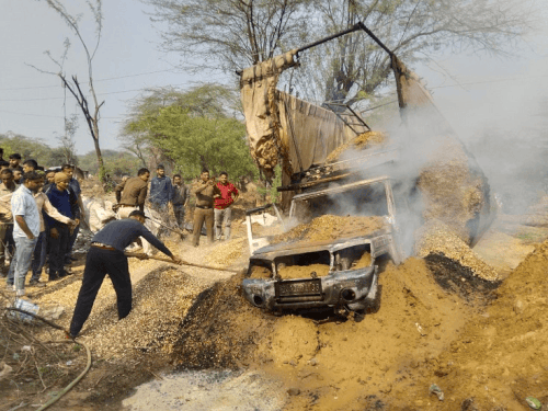 रेवाड़ी में जलने से पिकअप ड्राइवर की मौत:करंट लगने से लगी आग, पशुओं का चारा भरकर जा रहा, राजस्थान का रहने वाला