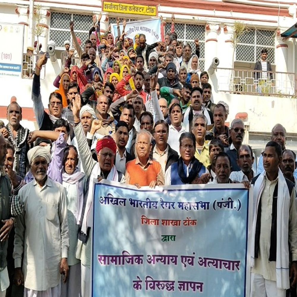 जिसको लेकर कलेक्टर को ज्ञापन सौपकर नियमानुसार जांच करवाकर राहत प्रदान करनें की मांग की है। ज्ञापन देने वालों में अखिल भारतीय रैगर महासभा टोंक के जिला अध्यक्ष शंकर लाल हाथीवाल, उपाध्यक्ष ओमप्रकाश धवलपुरिया, निवाई शहर अध्यक्ष बाबू लाल कंवरिया, कोषाध्यक्ष महेंद्र मंडरावलिया, मीडिया प्रभारी चेतन वर्मा, शहर देहात अध्यक्ष राजेश देवतवाल, दूनी युवा प्रकोष्ठ अध्यक्ष अमित थलेटियां, प्रहलाद जाबडोलिया, राकेश रैगर, राधेश्याम, भंवर लाल, मनभर देवी, प्रेम चंद, तुलसा देवी, रामस्वरूप रैगर, सजना देवी, कांता देवी,भूला देवी,उगंता देवी, कमलेश सहित दर्जनों लोग मौजूद थे।