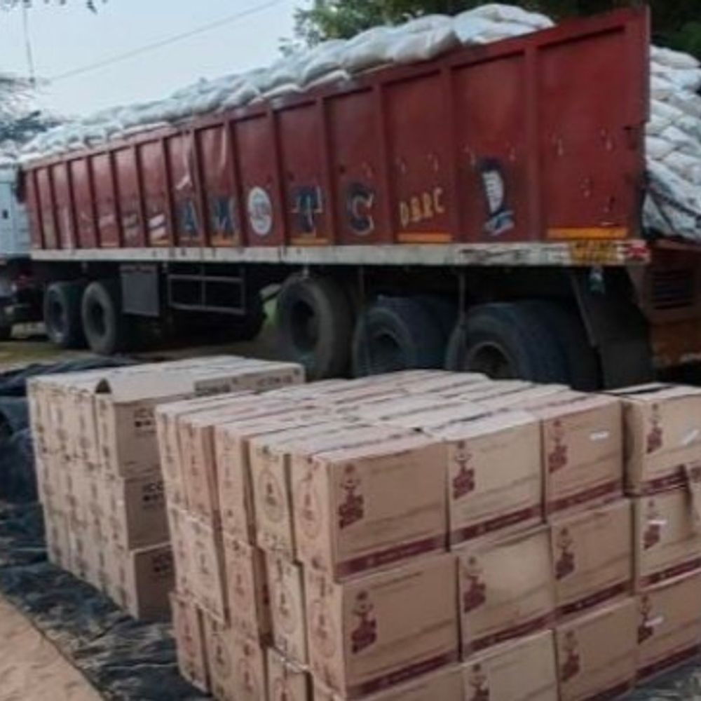 चावल के कट्टों के बीच में छिपा रखी थी शराब:80 कार्टन बरामद, चावल के 800 कट्टे और ट्रेलर भी किया जब्त, 2 तस्कर गिरफ्तार