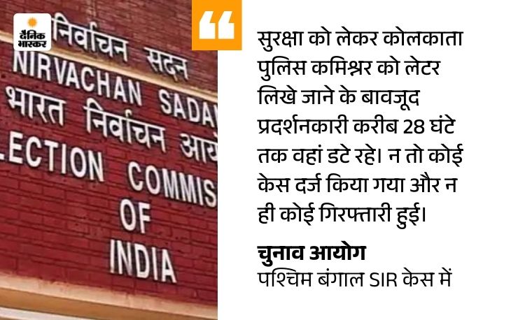 24 नवंबर 2024 को कोलकाता स्थित चीफ इलेक्शन ऑफिसर के दफ्तर के घेराव का जिक्र करते हुए EC ने बताया कि प्रदर्शनकारियों ने जबरन घुसने की कोशिश की, पुलिस बैरिकेड तोड़े, दफ्तर में तोड़फोड़ की और अधिकारियों की आवाजाही रोकी। इससे सरकारी कामकाज गंभीर रूप से प्रभावित हुआ।