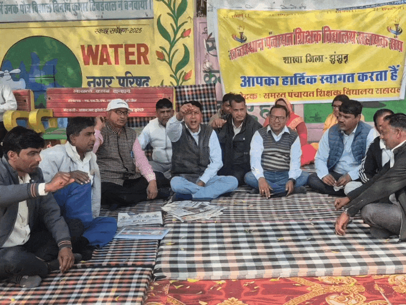 करो या मरो' की राह पर कार्मिक:संविदा कार्मिकों का झुंझुनू में अनिश्चितकालीन धरना शुरू, बजट से निराशा के बाद पंचायत शिक्षकों और विद्यालय सहायकों ने खोला मोर्चा