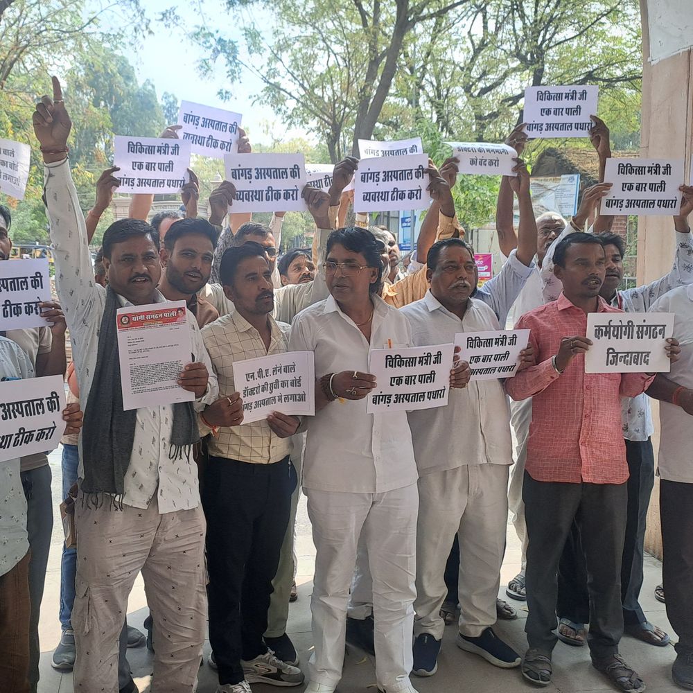 पाली कलेक्ट्रेट में शहरवासियों ने लहराए पोस्टर:बोले– बांगड़ हॉस्पिटल के लेटबाथ खराब, मरीज हो रहे रेफर, व्यवस्था सुधारो