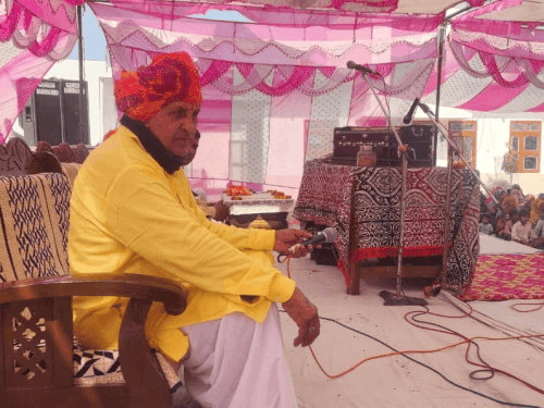 लोकगायक हरिराम गुर्जर ने किया ढोला गायन:सांसद भी रही मौजूद, दातलोठी खाटूश्याम मंदिर में भजन-कीर्तन और जिकड़ी में उमड़े लोग