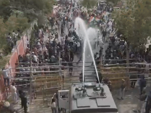 विधानसभा घेरने निकले कांग्रेस नेताओं पर बरसाई लाठियां:पुलिस ने पानी की बौछार की; अमीन पठान बोले- कार्यकर्ताओं को चोट आई