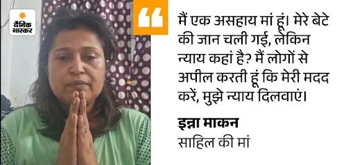 साहिल की मां इन्ना माकन ने रोते हुए सोशल मीडिया पर वीडियो शेयर किया।