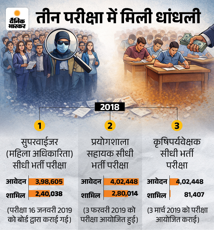 फेल अभ्यर्थियों को पास किया, 38 सरकारी नौकरी लगे:पैसे लेकर 2 नंबर के 206 कर दिए; 5 गिरफ्तार, 60 लाख रुपए जब्त