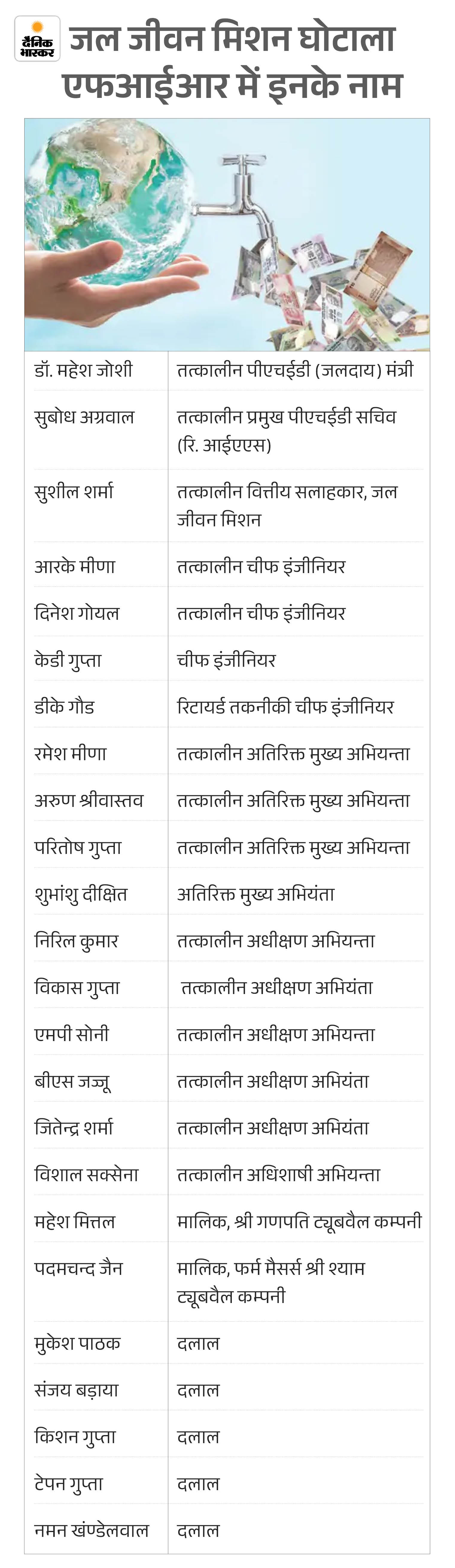 राजस्थान में जल जीवन मिशन घोटाले में एक हफ्ते पहले 10 गिरफ्तारियों और पूर्व IAS सुबोध अग्रवाल के फरार होने से मामला फिर सुर्खियों में है। जल जीवन मिशन के तहत ठेके लेने वाली कंपनियों के मालिक, दलाल और पीएचईडी (जलदाय विभाग) के इंजीनियरों पर मिलीभगत कर